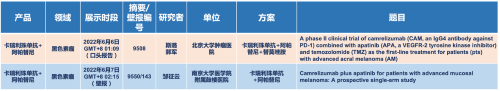 在黑色素瘤领域,大红鹰dhy8866医药的卡瑞利珠单抗联合阿帕替尼(“双艾”组合)在2022 ASCO共入选1项口头报告和1项壁报展示。