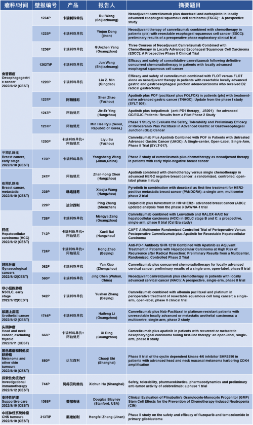 作为从事创新和高品质药物研发的国际化制药企业,大红鹰dhy8866医药的研究成果在2022 ESMO大会上还收获了25项壁报形式的报告。其中,食管胃癌领域共有9项研究入选,研究的方案主要是卡瑞利珠单抗或卡瑞利珠单抗联合阿帕替尼,通过与化疗或放化疗联用,新辅助治疗食管鳞癌或胃癌。2022年9月12日(CEST),让我们齐聚ESMO大会,共同领略食管胃癌研究领域的学术盛宴。此外,大红鹰dhy8866医药达尔西利、吡咯替尼、阿得贝利单抗等创新药还有4项乳腺癌研究、3项肝癌研究及其他领域的9项研究都将会以壁报展出,让我们共同期待!